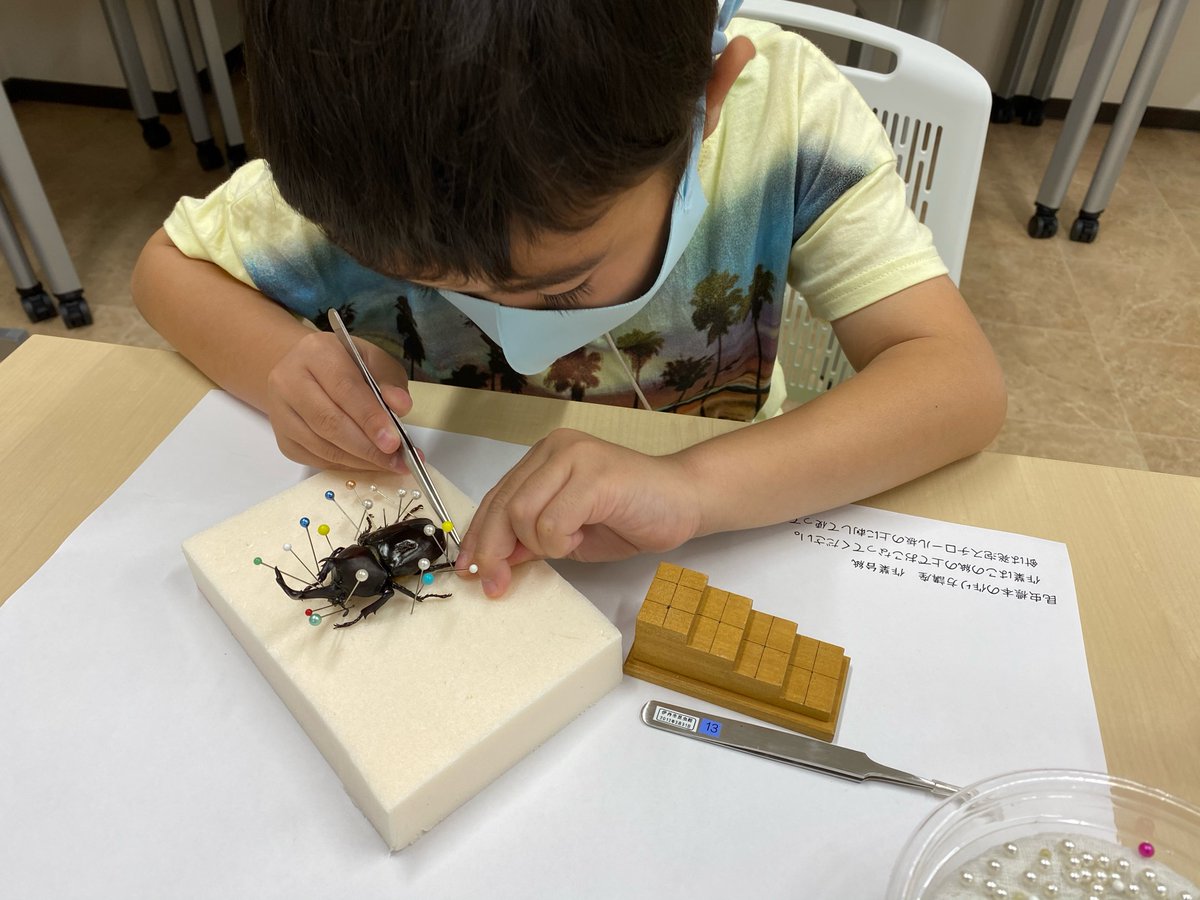 ピン セイダイ Nagashima Seidai 昆虫標本の作り方講座 今年はコロナの影響で 近所の施設の貸室を借りて開催した 綺麗で静かでめっちゃいいッ 講座室欲しい チビくんも友の会会員として受講した